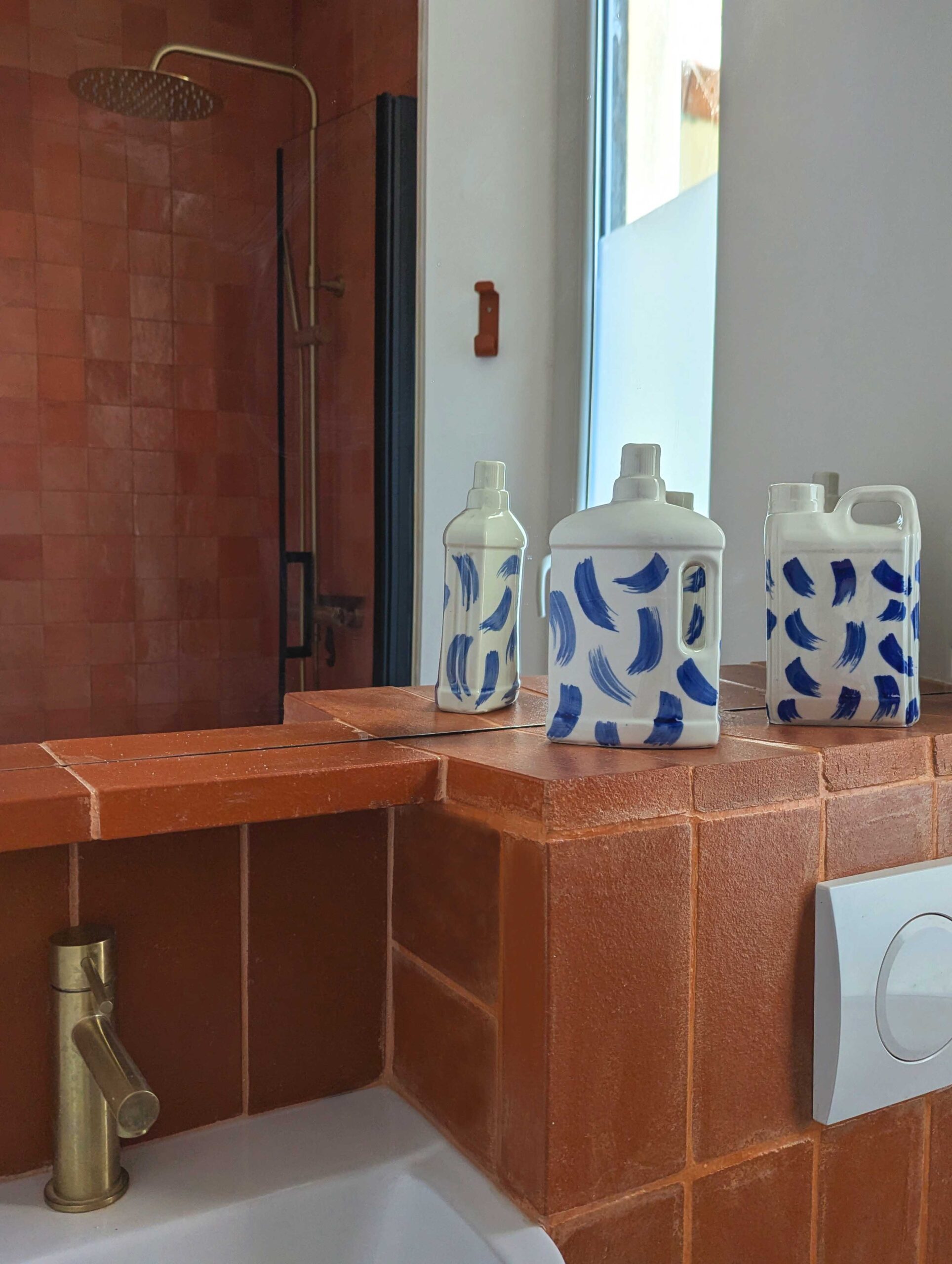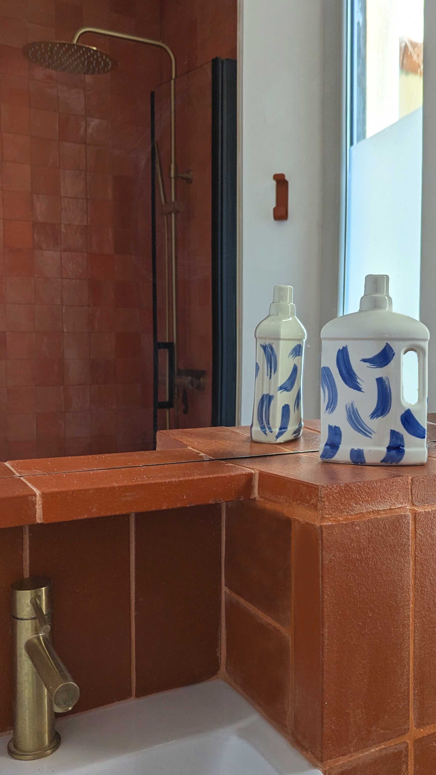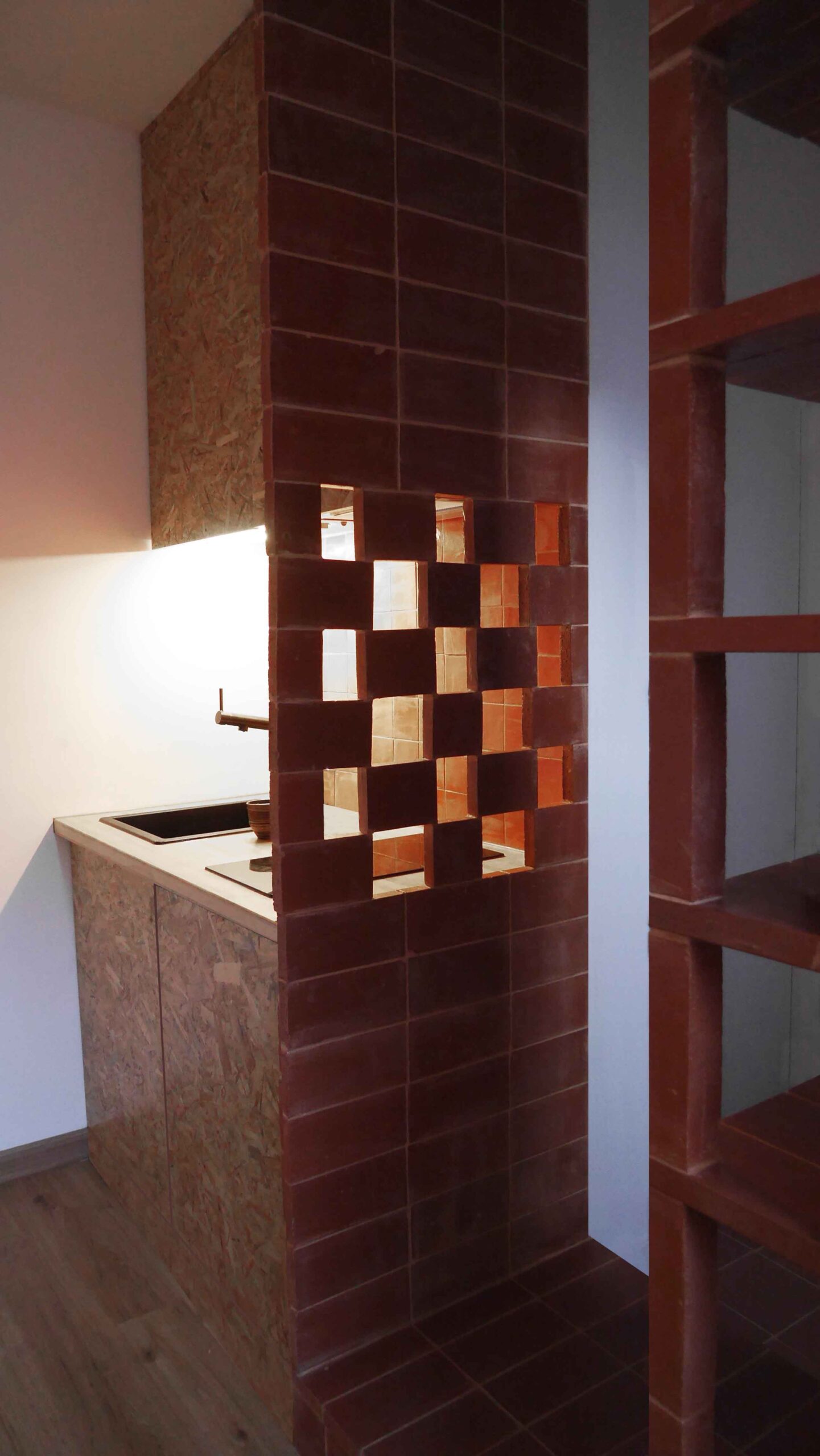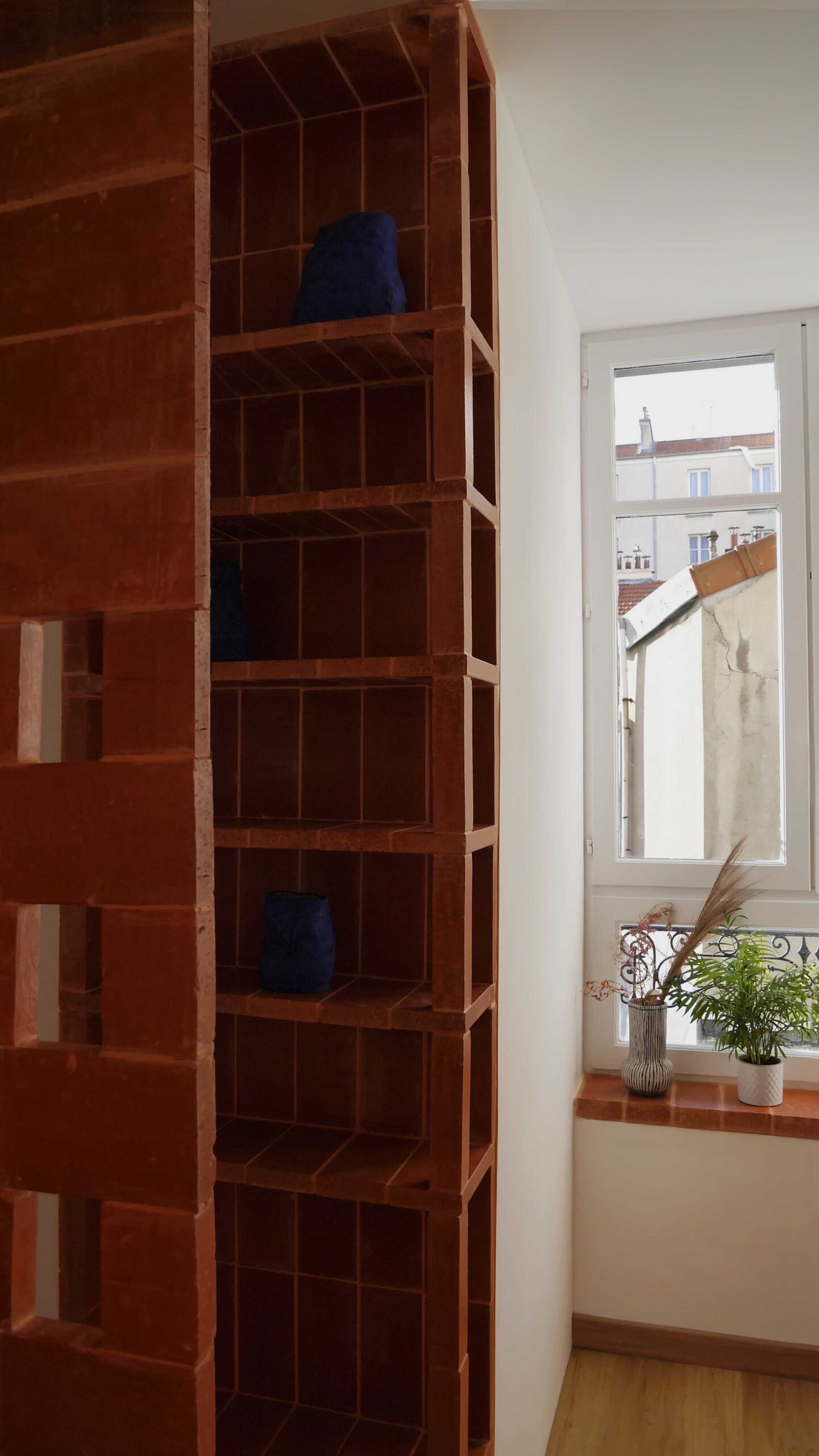 La décoration s’inspire des ambiances brique et OSB, mettant en avant des meubles et objets d’art sélectionnés avec soin, issus des créations de l’Atelier Entourage et d’autres artistes. Cet espace chaleureux et unique invite à la détente tout en célébrant l’artisanat.