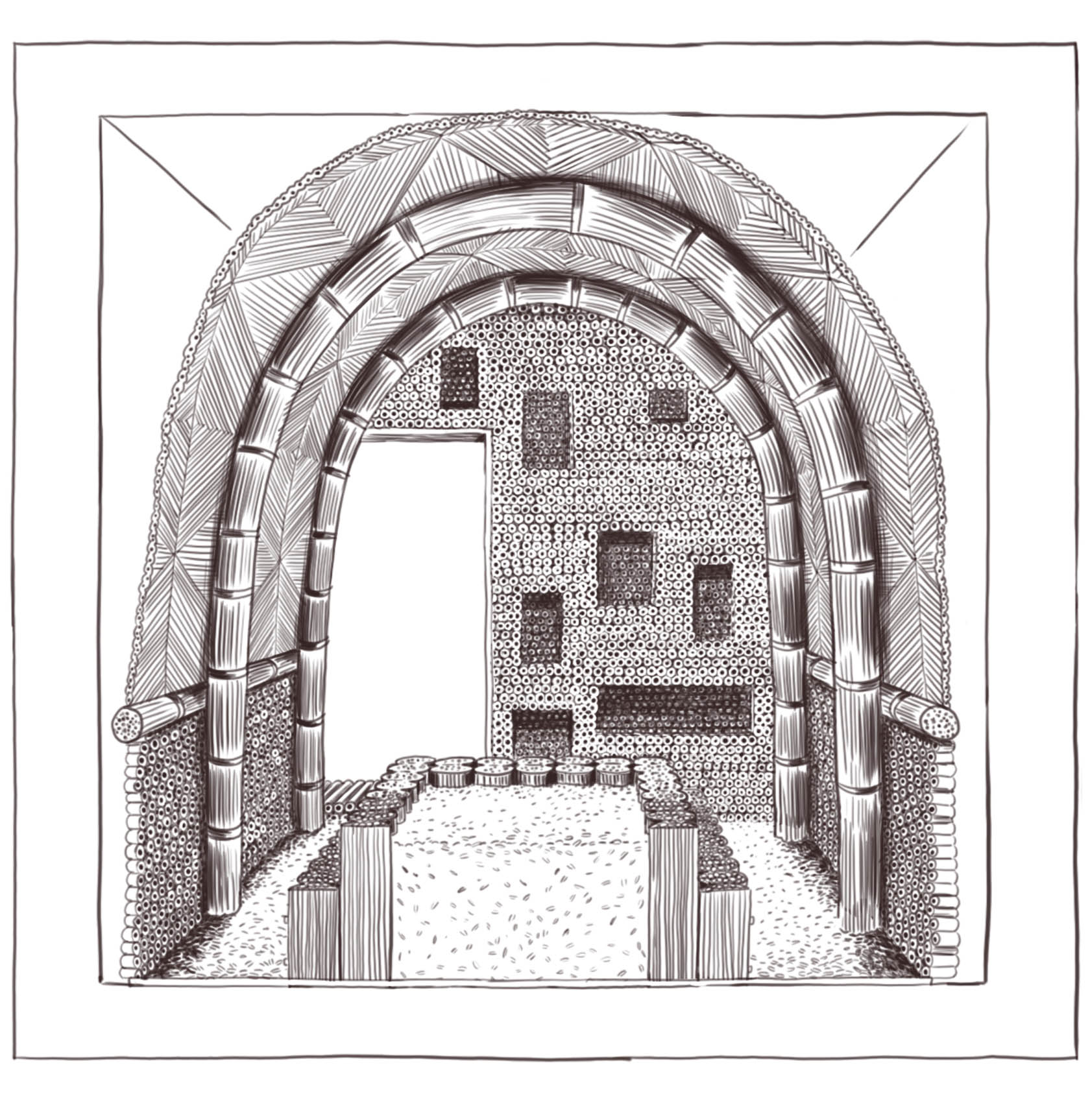 Notre pièce méditerranéenne est une invitation au lâcher-prise, un hommage au sud-est de la France et à certains de ses paysages. Ici, le concept d’un hôtel à sieste trouve une résonance particulière dans l’art de vivre méditerranéen, où le temps ralentit sous le bruissement des roseaux et l’ardeur du soleil filtré à travers une cabane.